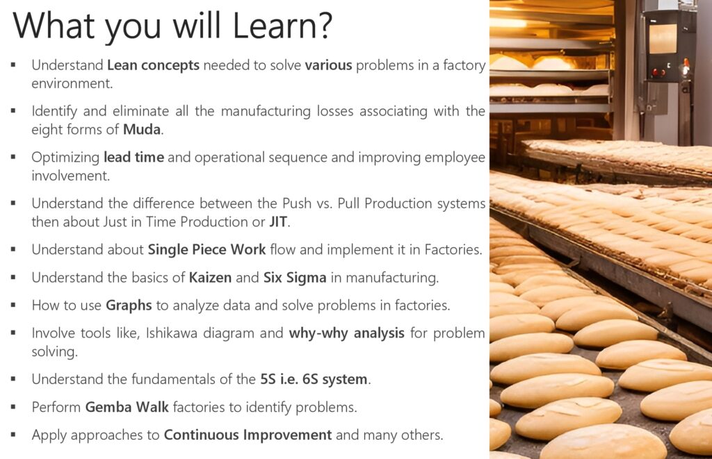 This program is developed exclusively for Manufacturing professionals working directly in the production floor, to skill-up themselves and achieve Professional Development. Also, anyone new to Lean Manufacturing may enroll here.
